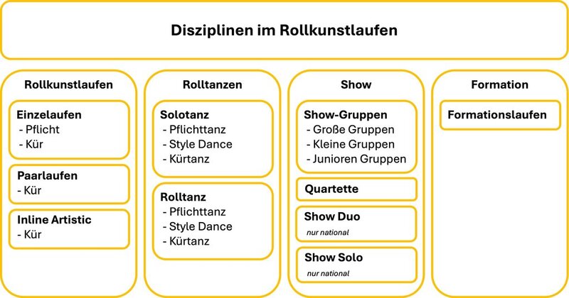Im Rollkunstlauf gibt es verschiedene Disziplinen, wobei einige der Disziplinen aus mehreren Wettbewerbsteilen bestehen. Die hier aufgeführte Übersicht stellt dies systematisch dar.